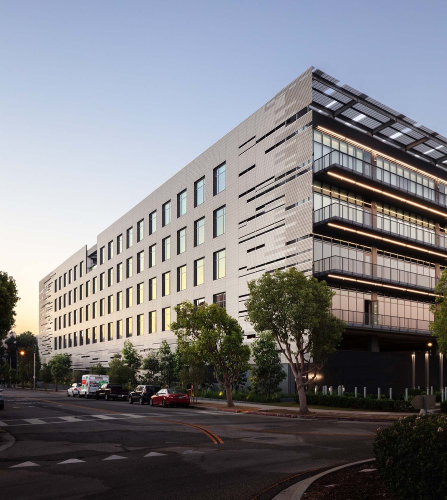 WE3是一个六层楼高的创意工作空间,位于被俗称为“硅滩”的普拉亚维斯塔的商业稳健地区,是一个已存在的商业园区中的第三座也是最后一座建筑。考虑到项目的物理范围和美学要求,以吸引该地区闻名的顶级科技和创意人才(包括谷歌、雅虎、YouTube和南加州大学的创意技术学院),主要挑战是创造一个与现有条件完全结合的计划,既要最大限度地利用该地块的可建设面积,又要保持令人信服的建筑标准。