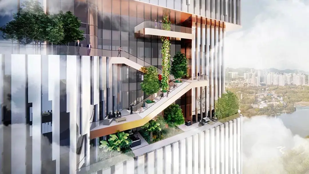 塔楼幕墙的设计巧妙地与瀑布的意境相融合,瀑布是岭南自然山水的一个显著特征。竖向百叶窗不仅保障了通风效果,还通过调节玻璃的反射率和透明度,模拟出水流的视觉效果。幕墙的细节处理宛如山水画作,也为总部在城市景观中打造了独一无二的地位,为城市结构注入了新的生命和活力。