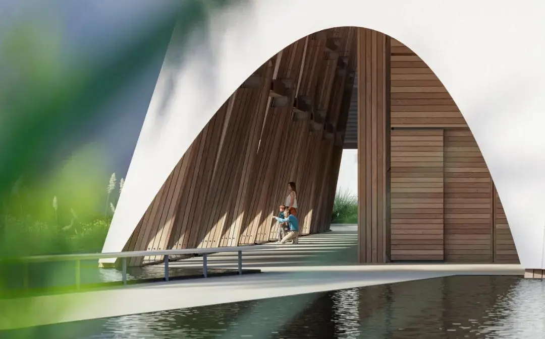 该展馆从卡塔尔传统的独桅帆船建造技术和日本的木工接合传统中汲取灵感,巧妙地将文化元素融为一体,以加强两国之间的联系。展馆的效果图展示了一个复杂的木质结构,外面覆盖着一层白色织物,这是对东阿拉伯海岸、东非、也门和南亚沿海地区传统帆船设计的致敬,这些帆船通常用于海上贸易。