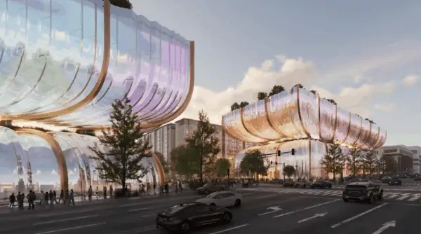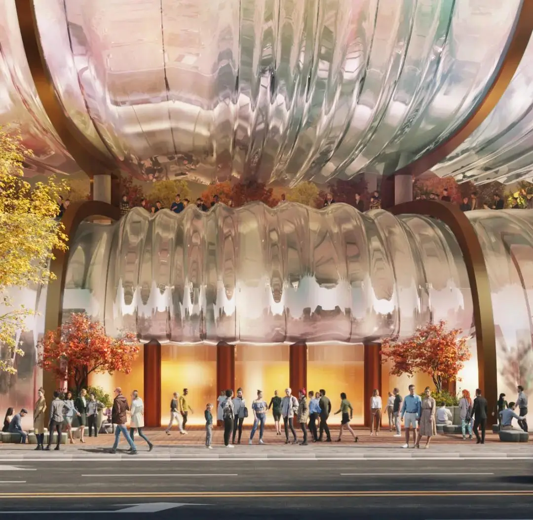当游客离开重新设计的现有地铁向上行走时,通风良好采光充足的入口中庭将他们吸引到地面上的两个景观广场。继续前行,将来到一个开放的夹层花园,这里咖啡馆、餐厅和商店林立。新的充满植物的开放式屋顶为人们提供了另一片绿地,与玻璃幕墙相称,为人们提供了多个视角和城市倒影。室外空间的设计采用本土植物和精心的景观设计,一年四季都能带来自然的趣味。