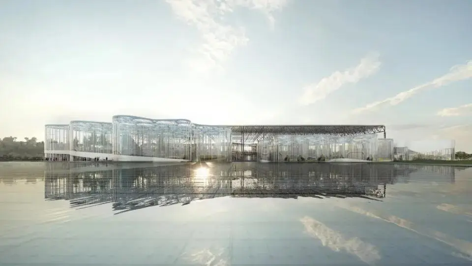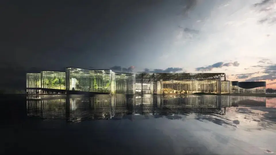 温室花园位于公园中心,坐落在中心湖畔,背靠双子山,总建筑面积约4万平方米,由DMAA设计。该项目深受旧钢铁车间影响,通过“阴阳”思想展现新旧对比,融汇传统与现代、工业与自然等对立元素,营造出独特的优雅氛围。