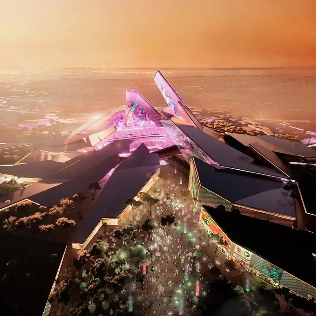 ROSHN 体育场设计外观类似无数块升入空中的水晶碎片,将建在利雅得南部,成为一个更大的住宅区的一部分。体育场居于正中,周围是整个碗状建筑的“水晶”结构,精致的网格设计,在夜色中熠熠生辉。场馆可容纳 45,000 名观众,设有灵活的多功能活动楼层,周围设有零售、酒店和户外公共空间。