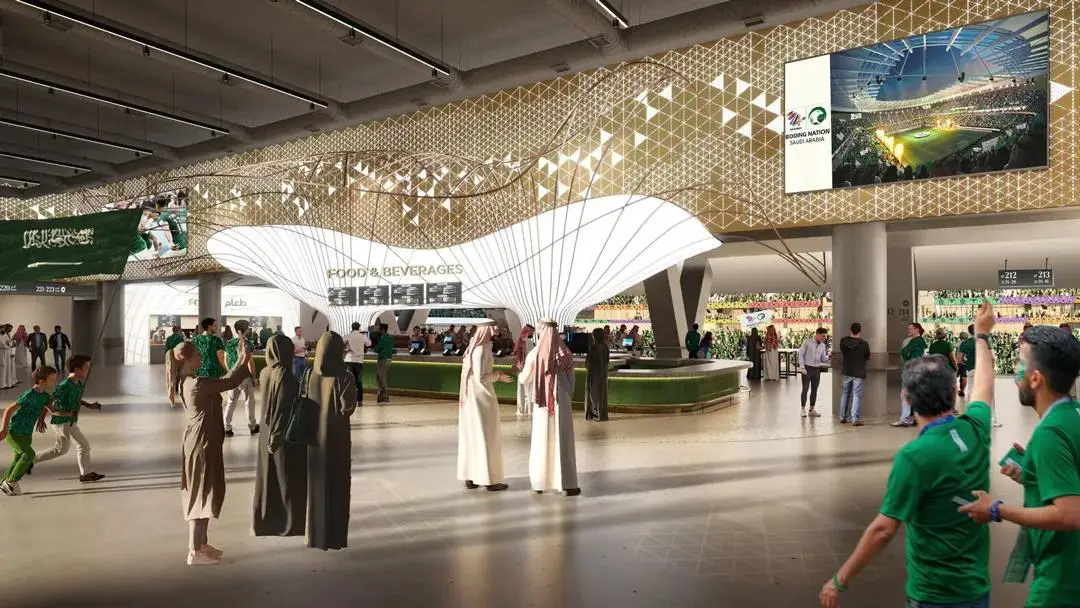 计划新建的阿卜杜拉国王经济城体育场,位于吉达北部红海沿岸,拥有超过45,000个座位。这座体育场的设计灵感来源于当地红海珊瑚礁的生长与适应方式,灵活且富有有机美感。该体育馆会发展成一个多功能中心,其他附属设施,包括三家酒店、多功能区域和一个体育诊所等将会在体育馆外围修建。2034年世界杯后,该体育场将举办足球比赛、音乐会和展览,并为社区提供充足的绿地。