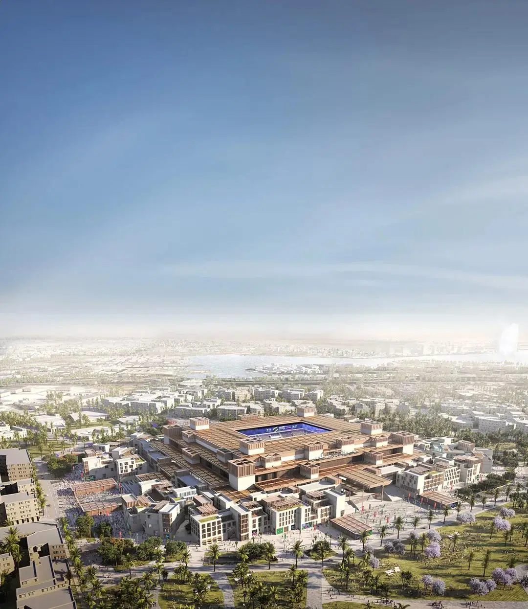作为吉达中心大型项目的主建筑之一,这座由德国GMP Architecten建筑事务所设计的体育场拥有45000个座位,目前仍在建设中。该体育场复刻了吉达阿尔巴拉德老城区的传统建筑元素,同时采用了先进的技术和创新的建筑设计。体建筑共有三层,外部的广场与周围的四个‘村庄’相连。碗形体育场的屋顶采用了半透明设计,并配有可伸缩的内顶棚,以及支持360度全视角观看的LED屏幕。